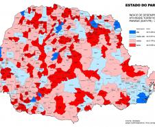 DESEMPENHO MUNICIPAL – Outro indicador importante do estudo é o Índice de Desempenho das Atividades Turísticas do Paraná (Idat-PR) de 2022 . O índice é resultado de um conjunto de dados extraídos de fontes oficiais e disponíveis ao público em geral, com periodicidade anual e recorte territorial que contempla os 399 municípios do Estado. Ele é feito a partir de oito variáveis que avaliam o impacto e o progresso das atividades turísticas em âmbito regional, fornecendo importante subsidio para elaboração de políticas de desenvolvimento no setor.